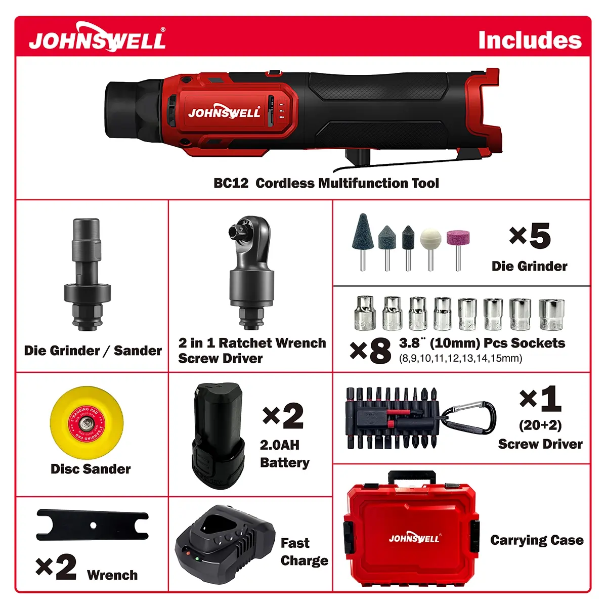 Includes 2.0Ah Li-ion Battery and Fast Charger